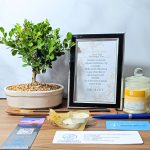 Se entrega un Bonsai, certificado de siembra en memoria de la persona fallecida, tarjeta personalizada con porta retrato vela de vidrio, esfero, porta incienso con dos varitas de incienzo y Bono de condolencia simbólico.